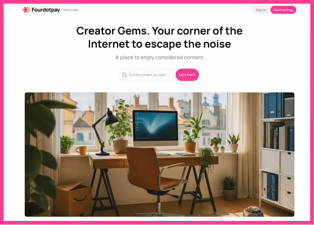 Creator Gems is a pay-per-article marketplace developed by us here at Fourdotpay that gives you the option to monetise individual pieces of digital content directly from your audience.