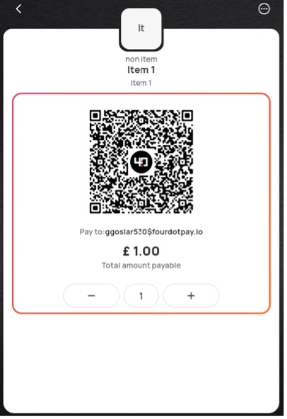 Request a payment by another Fourdotpay wallet holder by typing in their Fourdotpay ID or selecting an ID from your contacts list. Payment requests can also be done by capturing a show-to-pay QR code or creating a payment link and sending it to a Fourdotpay wallet holder. There is also a dynamic or static QR code created for the payer to capture.