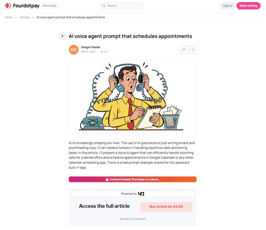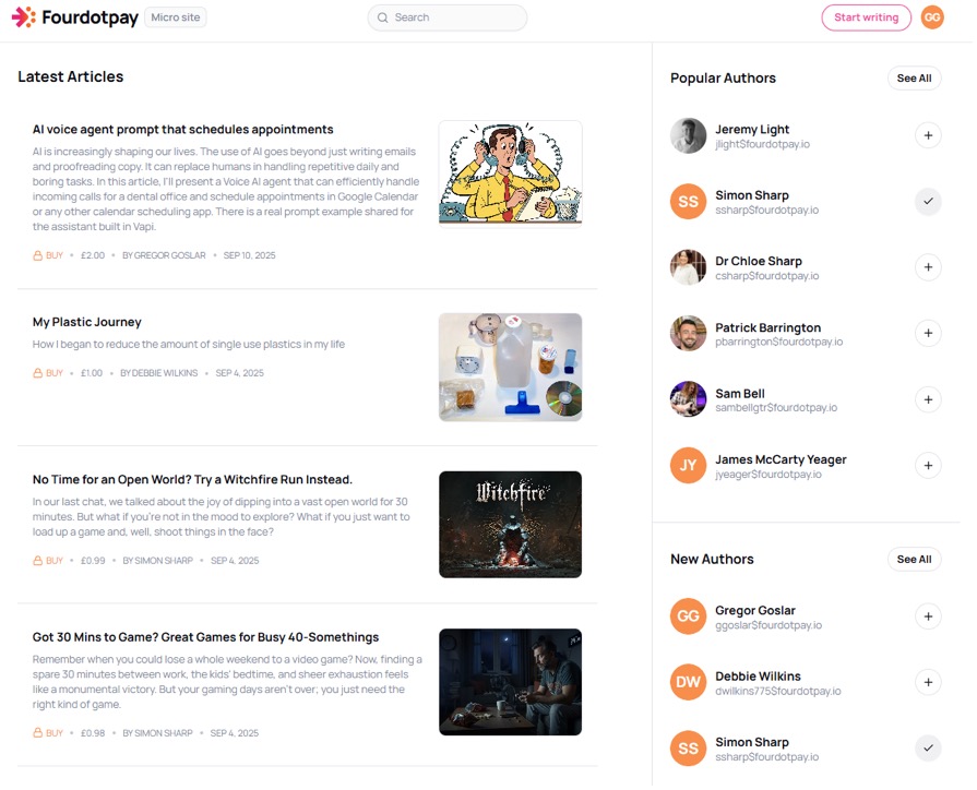 Fourdotpay is giving every new user of a wallet a credit of £1.50. This means that the first article might be free for your audience.