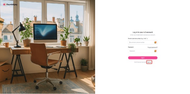 By verifying your login with the code sent to your mobile, you will be logged into your Fourdotpay wallet.