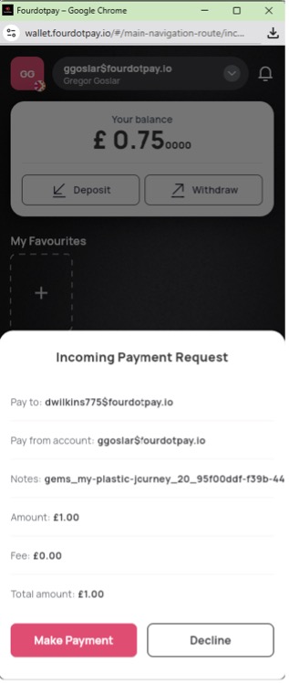 Your Fourdotpay wallet is intuitive and easy to use. It offers features beyond collecting payments from Gems. When opening the wallet, everyone gets £1.50 of credit which gives you the chance to test and purchase an article right away.